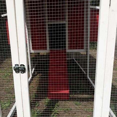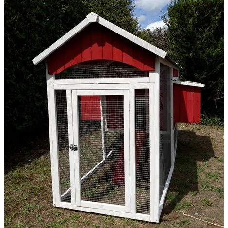 Découvrez le Deluxe : un poulailler coloré, robuste, pratique et ergonomique qui pourra accueillir jusqu’à douze poules dans des conditions idéales ! Un abri très chic pour vos petites poules Ses façades rouges et blanches associées à son toit vert bouteille donnent une allure singulièrement au Deluxe, un poulailler que l’on remarque ! Bien installé dans votre jardin, il deviendra, c’est certain, un élément important de votre décoration extérieure. En plus, bien sûr, d’offrir un cadre de vie chaleureux à vos volailles. Un poulailler bien pensé en bois de qualité Esthétique, le Deluxe n’en est pas moins solide et robuste. Sa structure à monter soi-même est composée de panneaux de bois épais de 10 mm d’épaisseur reposant sur des montants de 25 par 30 mm. Et depuis août 2020, il est équipé d’une visserie en acier bichromaté qui résiste mieux à l’oxydation. Son parc est constitué de grillage traité pour résister à la rouille et ce poulailler est pensé pour le bien-être des poules, mais aussi le vôtre. Ainsi, un tiroir à déjections en métal simplifie grandement la corvée de nettoyage. Une partie nuit bien isolée avec toiture en shingle La grande toiture qui couvre l’ensemble de la structure est en double pente, ce qui améliore l’écoulement de l’eau de pluie. Elle est recouverte de shingle, bardeau bitumé et gravillonné parfaitement étanche, matière que l’on retrouve souvent sur les abris de jardin par exemple. La partie nuit située en hauteur est bien isolée. Elle est en effet éloignée du sol et de son humidité. Vos poules y accèderont à l’aide d’une rampe en bois et trouveront à l’intérieur deux perchoirs ainsi que deux pondoirs. Une maison à volailles équipée de deux pondoirs Les deux pondoirs sont divisés en 4 nichoirs et pourront recevoir un nombre important de pondeuses qui se relaieront pour y pondre. Avec 8 nichoirs en tout votre poulailler pourra atteindre une capacité de douze bêtes. Ces pondoirs, eux-aussi recouverts de shingle, sont accessibles de l’extérieur, ce qui facilitera votre récolte d’œufs quotidienne. Un parc grillagé pratique et sécurisé Il offrira un espace de liberté en plein air à vos animaux, qui pourront s’y déplacer en toute sécurité. Ils s’en donneront à cœur joie et gratteront le sol, prendront des bains de poussière sans avoir à se soucier d’éventuels prédateurs. Sous la partie nuit, l’espace au sol sera lui aussi investit par vos amies à plumes. Un modèle dont vous pourrez facilement compléter l’équipement Le Deluxe possède déjà de nombreux accessoires. Mais vous pourrez vous-même le compléter en ajoutant une extension de son parc grillagé (réf : C6012RUN) et agrandir ainsi l’espace de liberté de vos poules. Disposez une trappe en métal taille S (réf : HS-trappe) actionnée par un portier automatique à l’entrée de la partie nuit. Ce système ouvrira et fermera la maison de vos poules selon les horaires que vous aurez choisis et elle sera de ce fait encore mieux protégée. Pour terminer, une bâche de protection contre la pluie et le vent conçue pour le poulailler Deluxe (réf : 466H) pourra s’avérer très pratique. Munie de nombreuses ouvertures placées aux bons endroits, elle vous permettra d’accéder aux portes et pondoirs tout en protégeant vos animaux des intempéries. Modèle également disponible avec un toit noir (réf : 466RBlack).