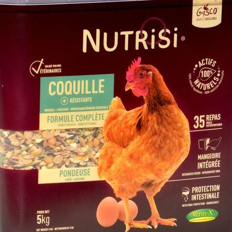 - Mélange complet formulé spécifiquement pour les poules pondeuses, enrichi en calcium pour des oeufs de qualité.