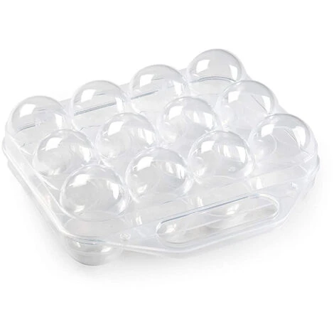 Coupe d’“uf en plastique transparente avec une capacit_ de douzaine d’“ufs et une d_votion compl_mentaire avec la poign_e pour faciliter le transport. Mesures: 198 x 95 x 75 mm. Pr_sentation: 1 unit_