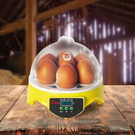 Certaines espèces de poules sont plus maternelles que d’autres et il arrive parfois que quelques races délaissent leurs œufs une fois pondus. Il est donc recommandé dans ce cas d’utiliser des incubateurs, aussi appelés couveuses, pour permettre aux œufs d’éclore. Avec cette couveuse manuelle capable d’accueillir jusqu’à 7 œufs, vous pouvez très rapidement agrandir votre élevage en toute simplicité. Idéal pour un petit élevage familial, l’incubateur vous permet d’obtenir un meilleur taux d’éclosion. La couveuse manuelle est fabriquée avec une base plastique de couleur jaune ainsi qu’un couvercle transparent vous permettant d’apercevoir en continu la transformation des œufs. Grâce à ses 7 emplacements, l’incubateur propose une capacité d’accueil allant jusqu’à 7 œufs de poules. Chaque socle pour œufs mesure 3,3 cm.Parfaite pour les débutants, la couveuse dispose d’un écran de 2,5 x 1 cm afin de contrôler la température et de la régler de 20 à 50° à l’aide des boutons « + » et « -« . Grâce à sa forme dôme et son système de ventilation, l’air pourra circuler de façon homogène et les conditions de couvaison seront idéales. Comme son nom l’indique, la couveuse vous impose de retourner les œufs à la main 2 à 3 fois par jour dès le deuxième jour d’incubation afin que l’embryon ne se colle pas à la membrane de l’œuf. Nous vous conseillons de procéder à cette manipulation jusqu’au dix-huitième jour environ d’incubation. Astuce ID Market : faites un trait ou tout autre symbole sur vos œufs afin de voir si ces derniers ont été retournés. Grâce à ce système de couvaison artificielle, vos petits poussins naîtront après les 21 jours d’incubation. Laissez-les encore une journée dans leur couveuse afin de laisser sécher leur plumage et qu’ils prennent quelques forces avant de rejoindre vos autres poules. Dimensions de l’incubateur manuel 7 œufs- Dimensions totales : Longueur 16 cm x largeur 15,5 cm x Hauteur 15,2 cm- Dimensions de l’écran : 2,5 cm x 1 cm- Dimension du socle d’un œuf : 3,3 cm- Dimension du trou d’aération : 0,7 cm- Température réglable de 20 à 50°- Capacité : 7 œufs de poules- Puissance 20W – Tension 220V- Certifications CE