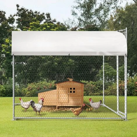 Élevez vos poules dans votre jardin en toute sécurité grâce au parc grillagé de 4 m². Facile et rapide à installer, vous pourrez offrir à votre élevage un enclos robuste et ainsi profiter de bons œufs frais tous les jours. Fabriqué en acier galvanisé, le parc grillagé mesure 160 CM de hauteur (au plus haut de la structure) afin de vous permettre un accès à l’intérieur. Grâce à son filet noir à placer sur le toit, l’enclos est sécurisé : ajoutez par-dessus une bâche waterproof pour que vos poules puissent s’abriter en cas de pluie. La bâche en polyester est également anti-UV pour protéger vos poules des trop forts rayons du soleil. Pensé et conçu par des éleveurs professionnels, ce parc en acier galvanisé est robuste et pratique. Équipé d’une porte avec fermeture à loquet, vous pouvez facilement prendre soin de vos poules et recueillir les œufs fraîchement pondus.Avec le grillage latéral (maille d’environ 25 x 25 mm – 1 mm d’épaisseur), l’enclos protège efficacement vos animaux des prédateurs, notamment des renards. Également équipé d’un filet pour le toit (maille d’environ 25 x 25 mm), votre élevage ne craindra aucune attaque. Vos poules peuvent sortir de leur poulailler et gambader en toute tranquillité.Astuce : pensez à ancrer les pieds de votre enclos pour qu’aucun intrus ne puisse creuser et passer par dessous sous votre grillage.Pour un confort maximal, retrouvez toute notre gamme de poulaillers pour compléter votre enclos et offrir à vos poules bien-être et détente ! Dimensions de l’enclos pour poules 4 m² avec filet- Dimensions totales : Longueur 200 CM x largeur 200 CM x Hauteur 160 CM- Hauteur de la structure au plus haut : 160 CM (face avant)- Hauteur de la structure au plus bas : 120 CM- Diamètre des tubes : 25 MM – Épaisseur 0.65 MM- Taille des mailles du grillage : environ 25 x 25 MM- Taille des mailles du filet : environ 25 x 25 MM- Grillage vert ou gris selon arrivage- À monter soi-mêmeRendez-vous sur notre boutique en ligne pour découvrir toutes nos autres dimensions d’enclos BOGOTA avec filet : – Enclos BOGOTA 8 m² parc grillagé 2x4x1,6 M acier galvanisé avec filet- Enclos BOGOTA 12 m² parc grillagé 2x6x1,6 M acier galvanisé avec filet
