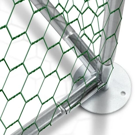 Vous souhaitez protéger votre élevage de volailles en leur offrant un nouvel espace ? Ajoutez un enclos au poulailler d’extérieur, pour une zone de promenade étendue et surtout sécurisée. Avec cette clôture grillagée vous mettez vos poules et autres animaux de basse-cour à l’abri des prédateurs. Renards, chiens, chats et oiseaux de proie seront incapables d’attaquer vos volailles.Grâce à une bâche de toit imperméable en polyester et anti-UV, vos gallinacés sont protégés non seulement de la pluie, mais également du soleil l’été. Offrez à la fois une aire de détente et un abri pour vos poules et autres oiseaux de basse-cour où ils pourront s’ébattre en toute sécurité.Cet enclos grillagé pour poules peut accompagner votre poulailler en bois ce qui permet d’offrir un cadre de vie naturel à vos animaux. Accédez facilement à l’enclos des poules grâce à sa porte sécurisée avec loquet et allez ainsi récupérer les œufs de vos volatiles sans risquer de les voir s’échapper.Facile à monter et d’une grande superficie de 9 M², la volière en acier vous permet d’élever entre 6 et 8 poules dans votre jardin.Astuce : pensez à ancrer les pieds de votre enclos pour qu’aucun intrus ne puisse creuser et passer par dessous sous votre grillage.N’hésitez plus, protégez vos poules ou animaux de basse-cour et offrez leur de l’espace ! Dimensions de l’enclos poules 9 m² parc grillagé 3×3 M- Dimensions totales hors tout : Longueur 300 CM x largeur 300 CM x Hauteur 200 CM- Diamètre des tubes de la structure : 25 MM- Taille des mailles : environ 25 x 25 MM- Piquet d’ancrage non fourni- Grillage vert ou gris selon arrivage- À monter soi-mêmePour plus de facilité de montage, nous vous conseillons d’être 2 personnes (temps estimé : 60 min).Poulaillers en bois vendu séparément sur notre boutique en ligneRetrouvez toutes nos différentes tailles d’enclos disponibles sur notre boutique en ligne :- Enclos poulailler 3m² parc grillagé- Enclos poulailler 6 m² parc grillagé- Enclos poulailler 12 m² parc grillagé- Enclos poulailler 16 m² parc grillagé- Enclos poulailler 18 m² parc grillagé- Enclos poulailler 24 m² parc grillagéDécouvrez également toute notre gamme d’enclos poulaillers sur notre boutique en ligne ! – HORS CORSE -article non livrable en Corse