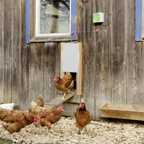 Grâce au contrôle dépendant de la lumière du jour avec capteur de lumière, vos poulets peuvent entrer et sortir tous les jours sans votre présence. En outre, le contrôle manuel vous permet de vérifier vous-même l’état de vos poules en ouvrant la porte manuellement. Vous pouvez régler l’heure avec une heure de retard pour les samedis et les dimanches avec le contrôle dépendant de l’heure.