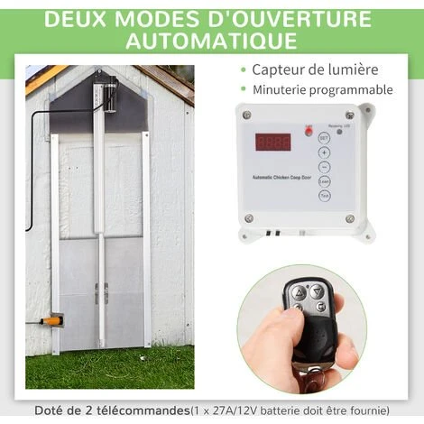 Offrez plus sécurité et de liberté à vos poules avec notre porte automatique PawHut. Cet accessoire ingénieux propose un mode d’ouverture par minuterie ou en fonction de la luminosité extérieure. Grâce à cette porte, vos poules seront protégées contre les prédateurs. Pratique, sûre et durable, sa conception en aluminium lui confère une grande résistance aux intempéries.
