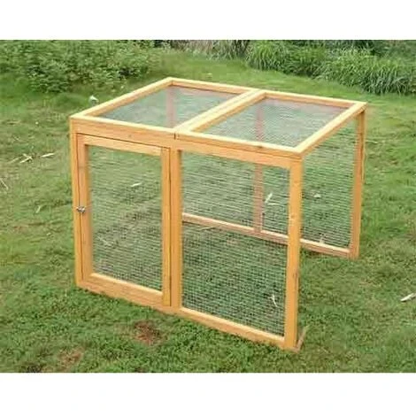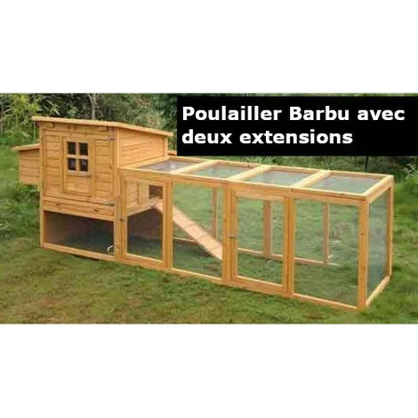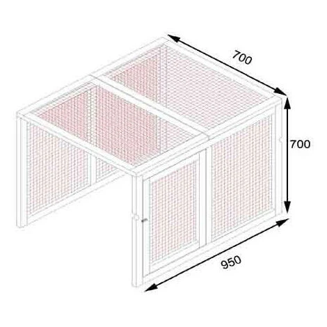 Extension grillagée en bois avec parois en grillage galvanisé adaptée aux poulaillers Barbu S et Barbu M. Dimensions : L. 95 x l. 70 x H. 70 cm.