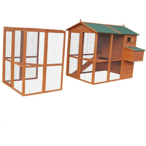Offrez à vos poules un espace de liberté encore plus grand en installant cette extension de parc grillagée sur votre poulailler Gaulois II. L’opération sera très simple et rapide et vos volailles vous en remercieront ! Un plus grand espace protégé pour vos poules Son parc grillagé intégré est déjà d’une belle taille et sa hauteur permet de s’y déplacer en se tenant debout. Il n’empêche, compléter son abri à volailles Gaulois II avec une extension d’enclos grillagé permettra d’augmenter considérablement le bien-être de ses occupantes. La zone sécurisée sera plus importante et la hauteur de 140 cm de cette extension sera toujours suffisante pour pouvoir s’y mouvoir sans avoir à se plier en 4. Solide, il repose sur des montants de bois de 25 x 30 mm. Trois de ses côtés sont couverts de grillage galvanisé ne craignant pas la rouille de maille 13 x 13 mm. Le quatrième côté laissé ouvert viendra se fixer sur le poulailler. L’accès à l’intérieur se fera par la grande porte se trouvant sur la face avant de l’extension. Il sera possible, en l’installant, de laisser une séparation entre la structure principale et son extension. Pratique pour mettre de côté un animal malade par exemple. Sécurisez les abords de votre poulailler Toute la place qu’elles auront grâce à l’installation de cette extension sera parfaite pour se dégourdir les pattes et prendre l’air à toute heure. Elle ne sera cependant pas suffisante pour garder des poules en bonne santé et en pleine forme. L’accès à un terrain de jeu plus important est indispensable. Il sera facile de sécuriser les abords de leur maison en utilisant un filet ou un grillage pour volailles pour les laisser se défouler au moins quelques heures par jour.