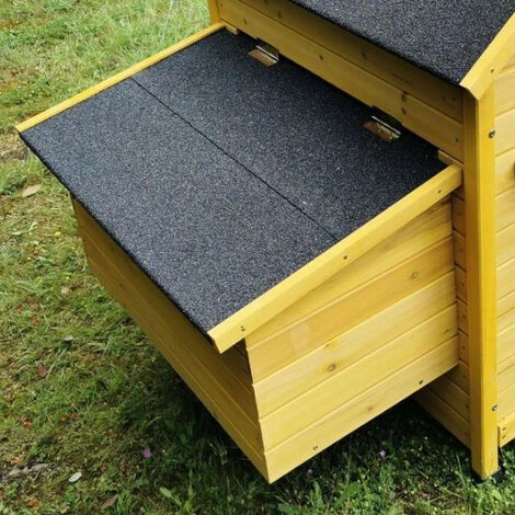 Pondoir additionnel adapté au poulailler Bassette XL dans sa version en shingle noir. Dimensions : L. 74 x l. 39,2 x H. 35 cm.