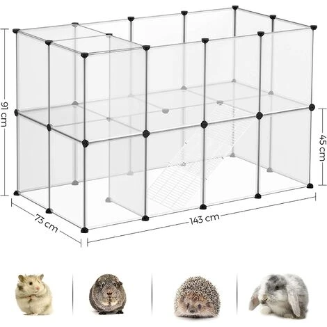 SONGMICS Parc Modulable Pour Cochon D’Inde, Cage Avec Escaliers, 143 X 73 X 91 Cm, Enclos Avec Panneaux, Pour Hamsters, Lapins, Petits Animaux, Transparent LPC005W01 – Transparent