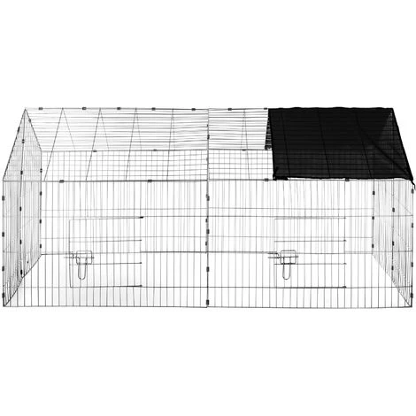 Cage, Clapier, Enclos, Parc d’Extérieur à Lapins et Petits Rongeurs avec 1 Toit en Métal 180 cm x 75 cm x 75 cm TECTAKE. • L’enclos d’extérieur doté d’une protection contre le soleil offre à vos chinchillas, vos cochons d’Inde, vos hamsters, vos lapins et vos petits rongeurs une maison confortable et sûre. • Ce clapier est pourvu d’un espace libre au sol qui permet à vos rongeurs de manger de l’herbe fraîche. • Ce parc d’extérieur garantit un air frais à vos petits animaux. • La grille de qualité assure la stabilité de l’enclos et protège vos rongeurs contre les prédateurs (rapaces, chats ou renards). • La protection contre le soleil assure un coin ombragé aux petits animaux. • Cette cage est résistante aux intempéries.
