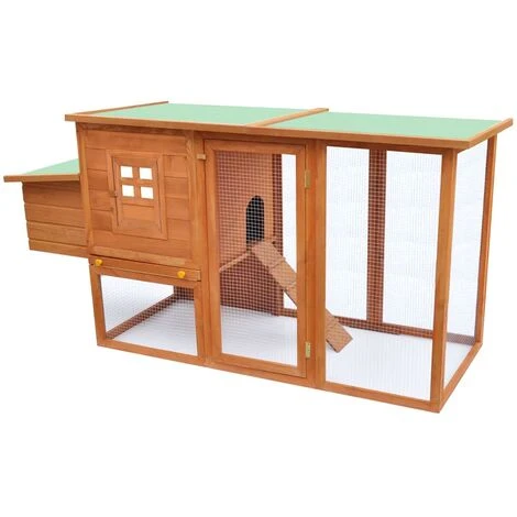 Fabriquée en bois de pin de haute qualité, la cage est durable pour des années d’utilisation. Le toit vert imperméable sur le dessus empêche la pluie, créant une zone de repos chaude et confortable à l’intérieur du compartiment.