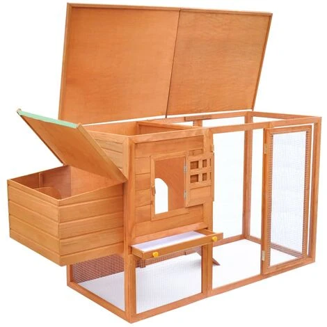 Cette cage à poulet en bois offre un grand endroit confortable.