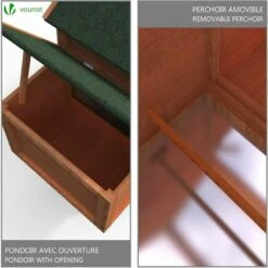 Ce n’est pas seulement un poulailler mais cette maison en bois peut également accueillir des lapins et petits animaux. Le perchoir peut s’enlever et vous pouvez y rentrer plusieurs lapins et les placer dans les 3 compartiments pour un joli nid douillet.