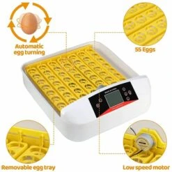 - Caractéristiques: Incubation réglable, Retournement réglable, Température réglable, Humidité réglable, Ventilation, Indicateurs LED, Fenêtres de surveillance, Alarme